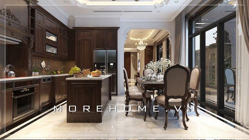 Thiết kế nội thất phòng bếp biệt thự tân cổ điển sang trọng và tiện nghi